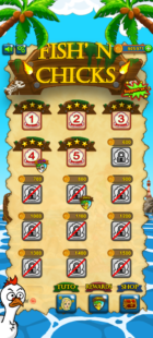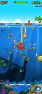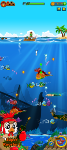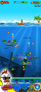 Fish’ N Chicks is a colorful Shoot ‘Em Up where the player must keep a raft afloat against waves of ferocious fish. Taking inspiration from the old shooter arcade game Deep Scan released by Sega in 1979, the player must avoid all sort of projectiles launched by the fish below the surface and counter-attack with chickens in order to destroy the enemies. Special Attacks to clean up your screen are on the menu and Mermaids will help you along the way to recover your health.